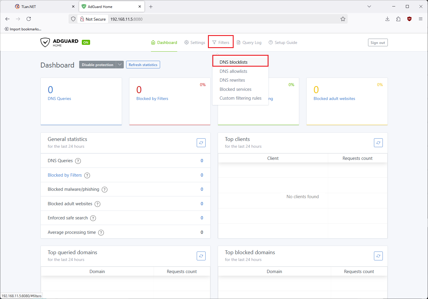 Няколко опции отностно скрипта. -c <channel> за избор на специален канал; -r за преинсталиране на AdGuard Home; -u за де инсталация на AdGuard Home; -v за подробен изход. Обърнете внимание, че опциите -r и -u са взаимно изключващи се. И накрая обърнете внимание на червения надпис. Това е линка от който ще можете да управлявате AdGuard Home. Да пробваме: http://192.168.11.5:3000