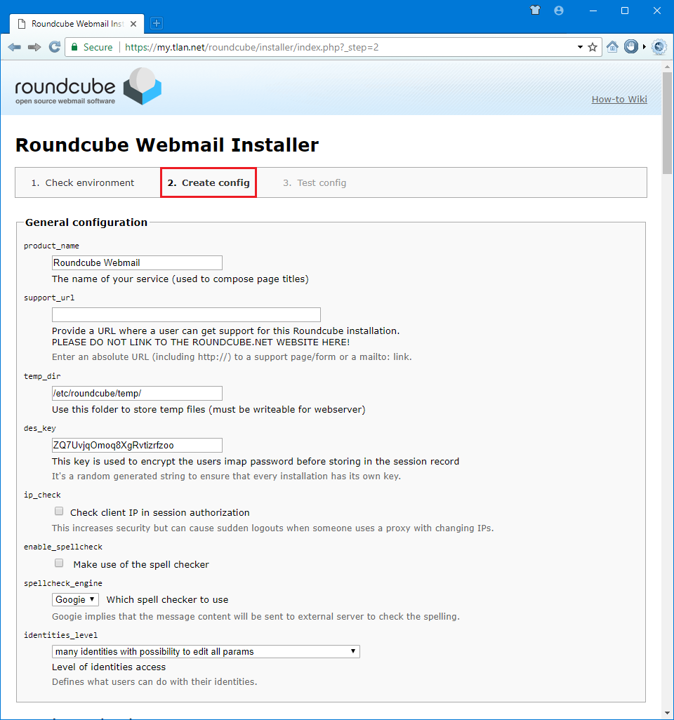 nano /etc/roundcube/config/config.inc.php <?php $config['enable_installer'] = true; /* Local configuration for Roundcube Webmail */