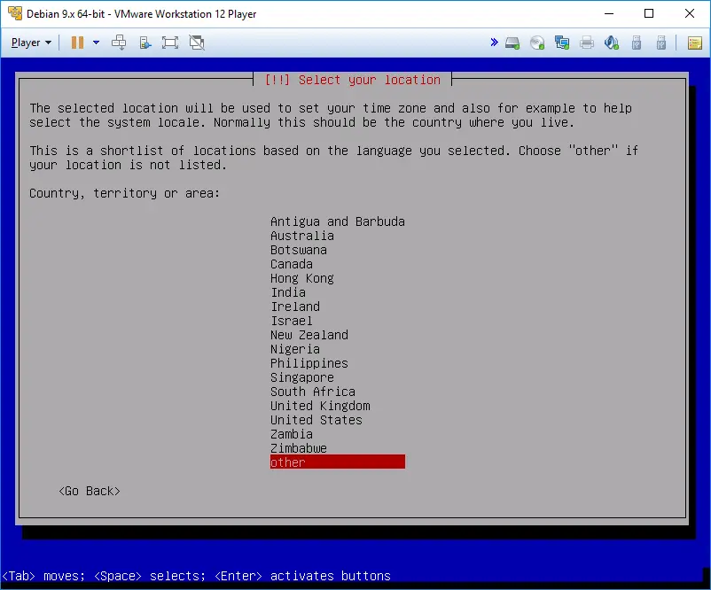 Предлага да изберем часовата зона в която се намираме, в случая нашата я няма затова избираме other и натискаме Enter за продължение.
