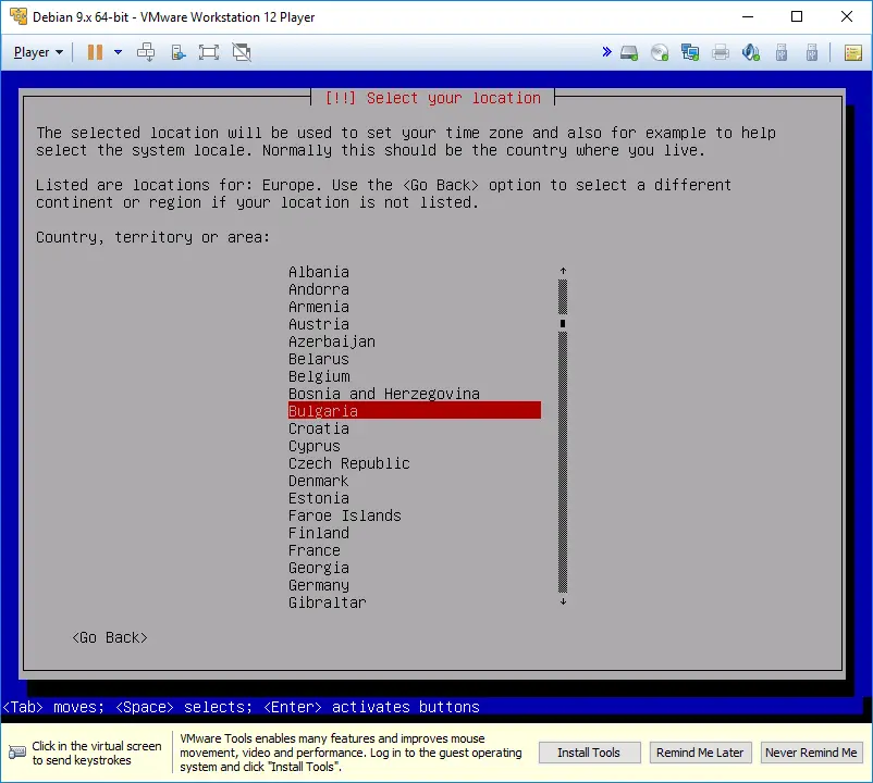И пак часова зона вече сме в България затова избираме Bulgaria и отново Enter за продължение.