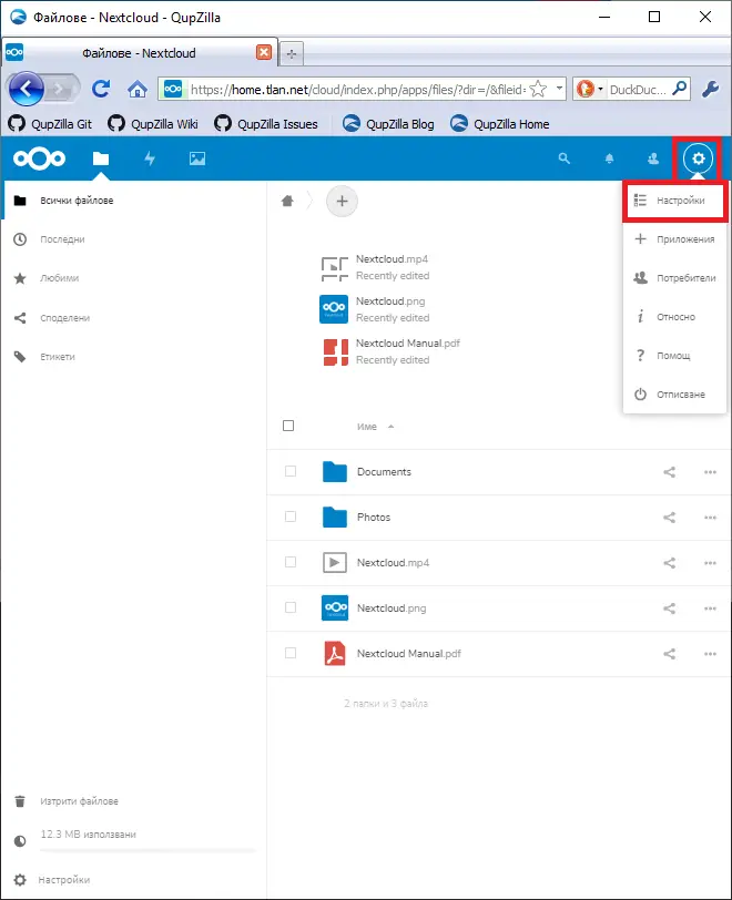 Внимание: не слагайте файлове различни от архива в директорията /home/www/nextcloud. Вътре трябва да са само разархивираните.