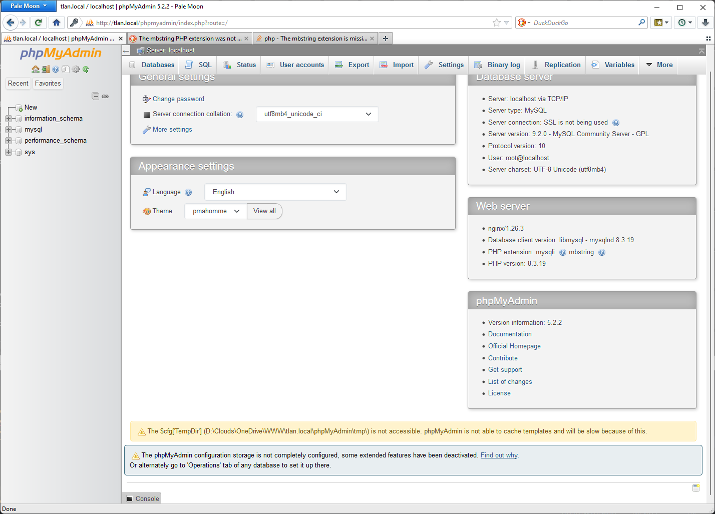 The $cfg['TempDir'] (D:\Clouds\OneDrive\WWW\tlan.local\phpMyAdmin\tmp\) is not accessible. phpMyAdmin is not able to cache templates and will be slow because of this. Грубо казано нямаме права върху папката D:\Clouds\OneDrive\WWW\tlan.local\phpMyAdmin\tmp\