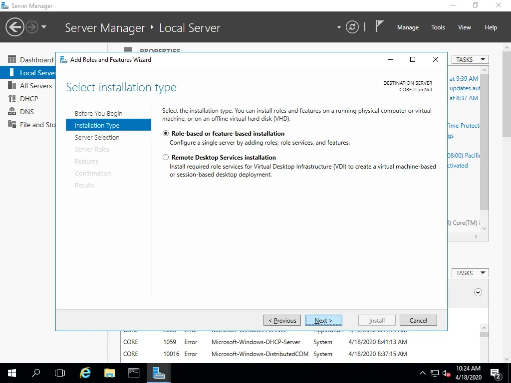Всичко е както на схемата. Задачата е, потребителите да получат Internet. Освен това потребители през Internet да могат да постъпят домейна. За целта RRAS сървъра трябва да изпълнява LAN Routing, NAT+PAT, VPN. Започваме с инсталиране на ролята.